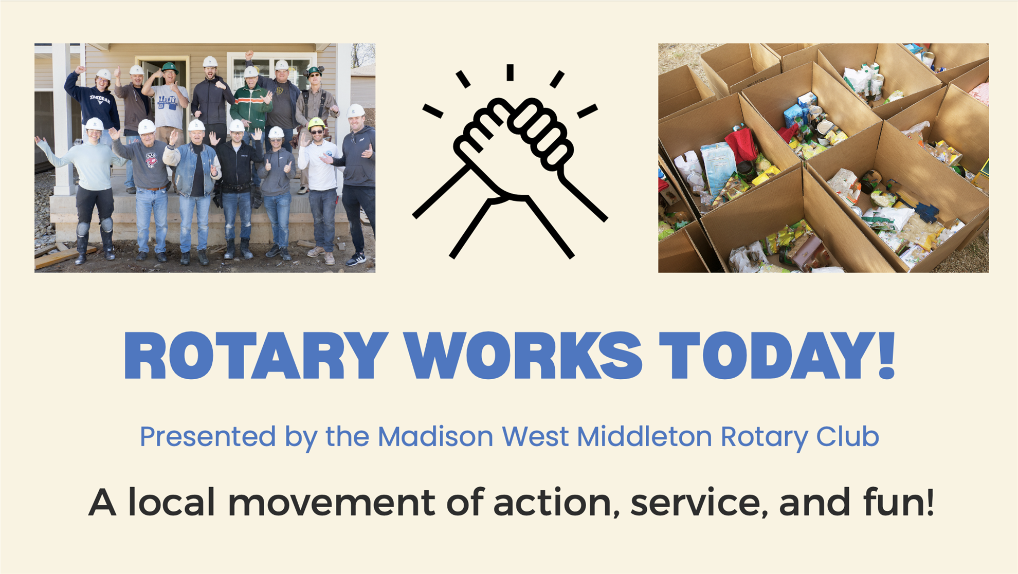 Rotary Works – Today! is our Club’s outreach to the community with engagement in dozens of projects in a single day. The date is September 27, 2025. More info to come. Get engaged in the largest project our Club has ever put together – Contact project boss Mary Van Hout at maryevanhout@gmail.com.